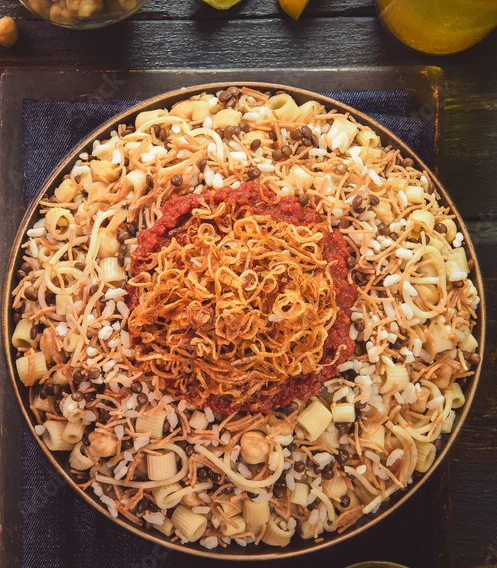 Egyptian cuisine boasts flatbreads, vegetables, lentils, and meats like lamb and chicken. Notable dishes include "koshari," "shawarma," and seafood-based "sayadieh." Spices like cumin and garlic, along with sweet treats like "baklava," define flavors. Traditional drinks are "karkadeh" and aromatic "shai" or "ahwa." Egypt's cuisine is a diverse and flavorful experience.
